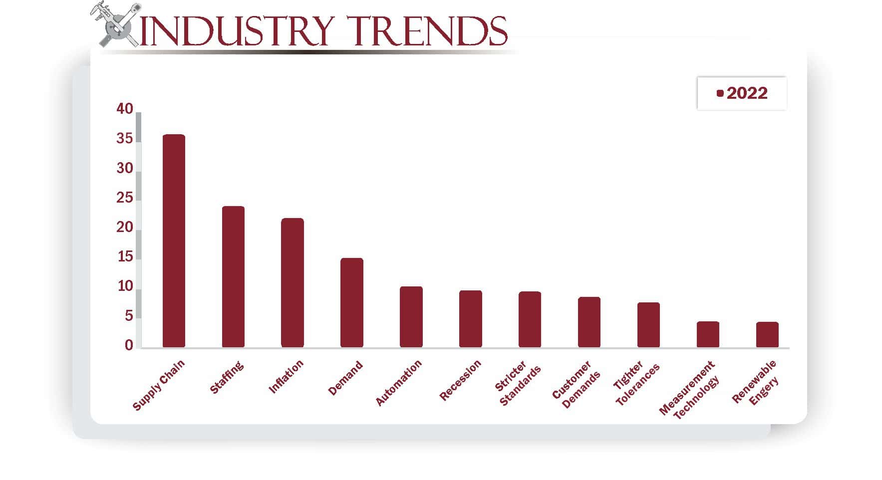 There is no surprise here that the top 3 trends were supply chain, staffing and inflation. These are also key factors that drive the growth of the market. With rising awareness regarding quality maintenance, it speaks loudly to us that having a quality program that is running efficiently is key. This dashboard view of trends supports the backbone of FVM commitment to quality and exceptional customer service.