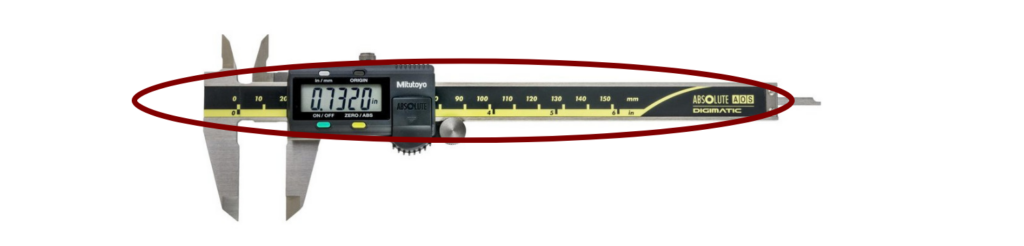 The beam is where the main scale sits and where the slider can slide back and forth across the caliper. In all honesty, the beam is the backbone of the caliper.