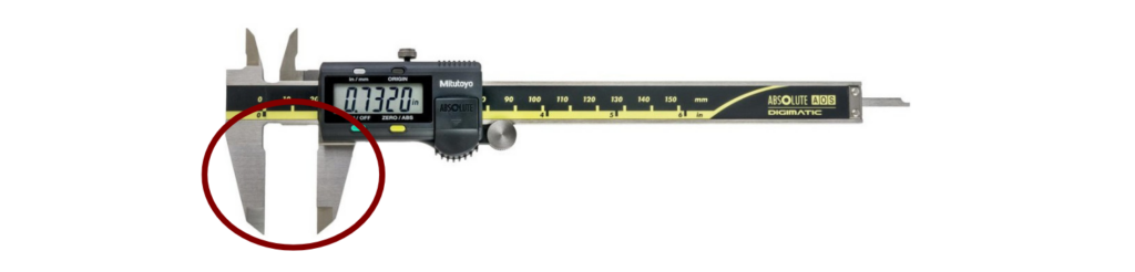 The outside jaws of a caliper are typically larger and are the most commonly used jaws of the caliper. They are used to measure the outside diameter, length and width of an object.